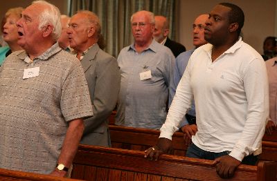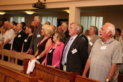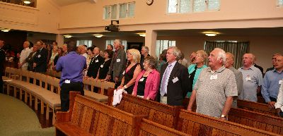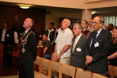 On the 14th June 2008 just under 100 former members , staff and their partners met to celebrate the centenary of the 70th London Company at Tooting Junction Baptist Church. The members talked and reminisced into the early evening looking at the many pictures and items of memorabilia which decorated the hall’s walls. At 4.00pm . We gathered together to give thanks to God for the past 100 years and the Mayor of Wandsworth Cllr John Farebrother , ex captain of the 99th London unveiled the 70th centenary plaque in the church sanctuary. The short service was led by former Captain Rev. Neil Pheasant.
