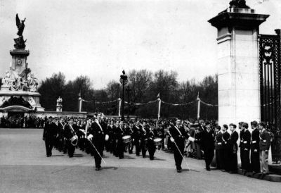 Two of the highlights for me were taking part I, with the band in 1951, in both the Royal Albert Hall Display and heading the BB parade to Buckingham Palace where the batons and Messages of the BB Festival of Britain relay run were presented to His Majesty George VI.